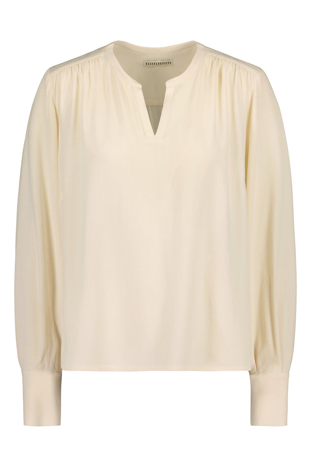 Een klassiek mooie Sellmo blouse in een vernieuwd model. Het materiaal is 100% ecovero, wat prachtig valt. Een vrouwelijke en eenvoudige blouse voor dagelijks gebruik en feestjes. Mooie details op de mouw zijn onder andere een lange manchet met een knoop. De zoom is licht afgerond en er is een split aan de zijkant. Een mooie plooi op de schouder, die de blouse mooi laat vallen en een losse pasvorm geeft. De split en zoom bij de halslijn geven een afgewerkte look.