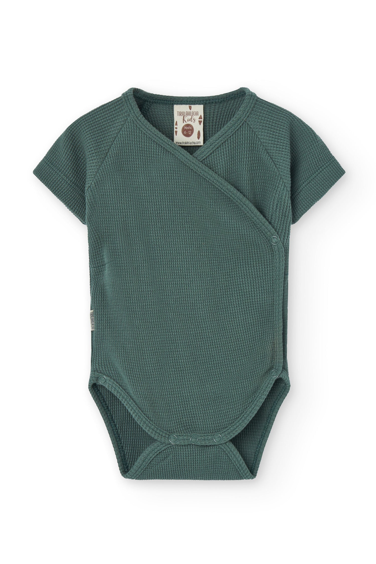 Deze Haruka Waffle Kimono Bodysuit is ontworpen voor maximaal comfort. Het wikkellichaam heeft een V-hals en korte raglanmouwen, en is perfect voor de hele dag dragen. De nikkelvrije drukknoopjes zorgen voor gemakkelijk en veilig aankleden.