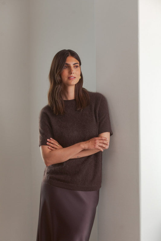 Karlie Short Sleeve Cashmere Sweater Dark Chocolate