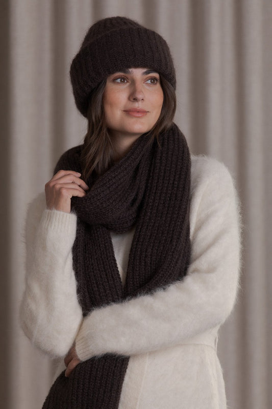 Mija Kid Mohair Blend Scarf Dark Chocolate