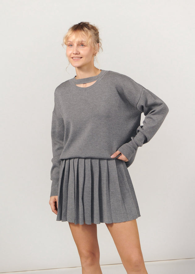 De Rotondo trui is in One Size met een oversized pasvorm en heeft een gedetailleerde halsuitsnijding die subtiel een vleugje huid onthult. De Piccolo geplooide rok zit in de taille met een verstelbare elastische band voor een aanpasbare pasvorm. Samen vormen ze een chique en stijlvolle co-ord.