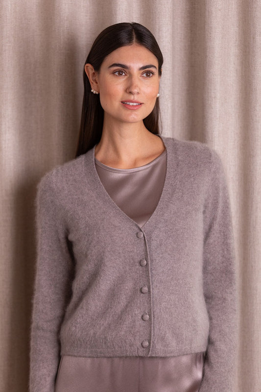 Karlia Short Sleeve Cashmere Cardigan Dark Chocolate