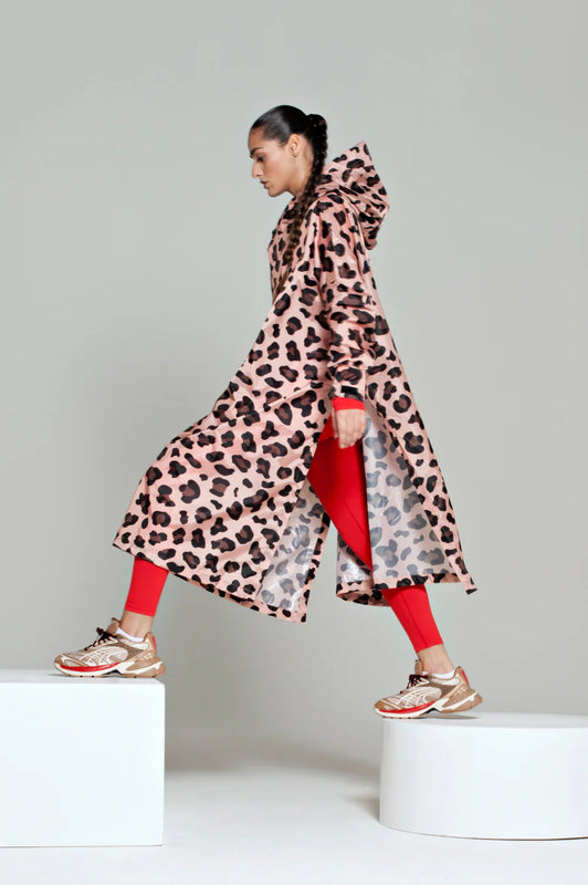 De Pink Panther regenponcho combineert een exotische panterprint met zachte, eigentijdse kleuren. Het is gedurfd, het is stijlvol, het is onverschrokken en het is ook droog... het is de Pink Panther.