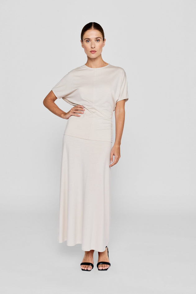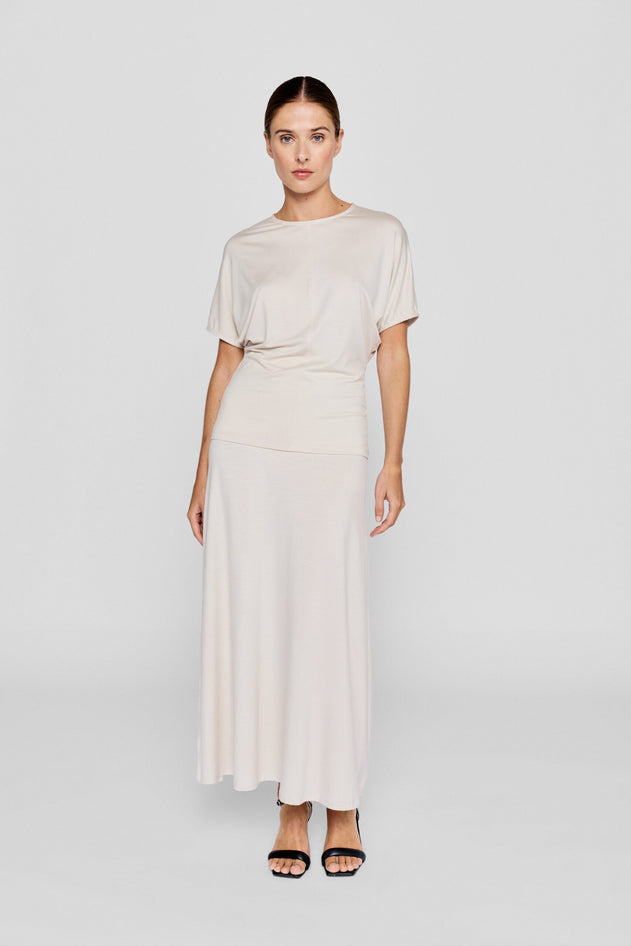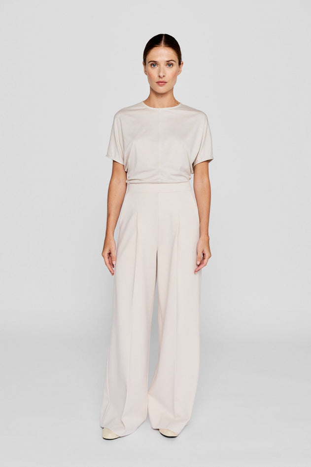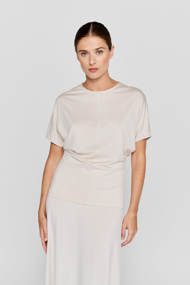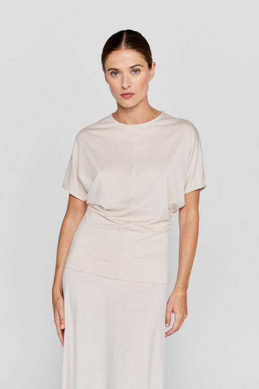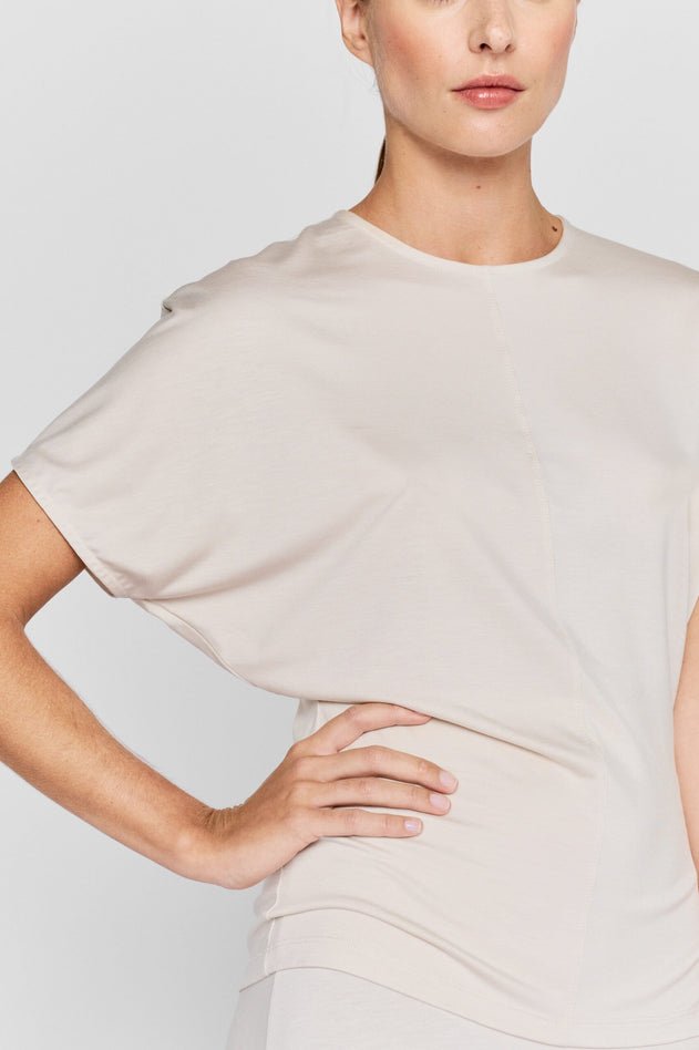 De oesterbeige Glass Top van RESIDUS heeft korte vleermuismouwen en elegante kleermakersdetails. De TENCEL™ lyocell is zijdezacht, lichtgewicht en rekbaar, waardoor de Glass Top een geweldige, verfijnde dagelijkse blouse is.