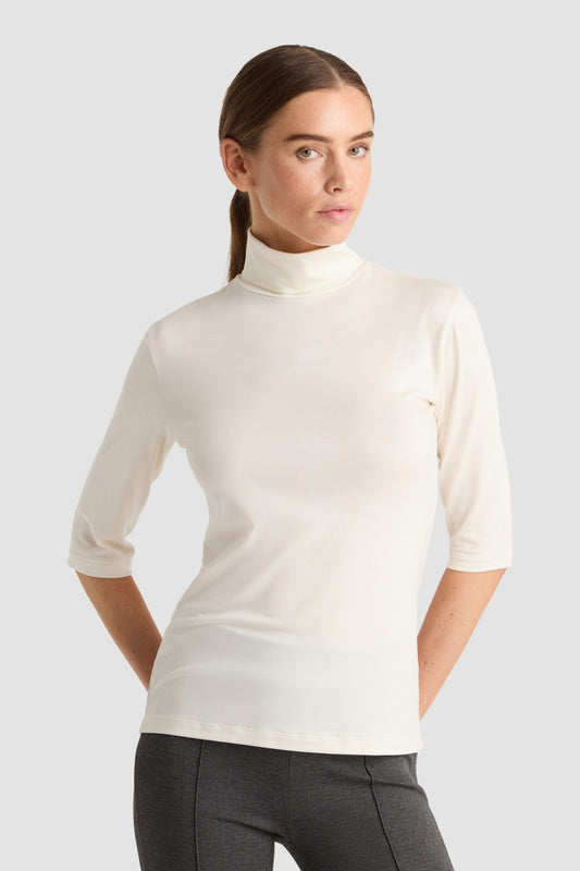 De Tigi Turtle Paper is een nauwsluitende top ontworpen voor een gestroomlijnd silhouet, met een klassieke coltrui en ellebooglange mouwen. De normale lengte zorgt voor veelzijdige stylingopties, waardoor het een verfijnde keuze is voor het dragen in laagjes of alleen met een gepolijste, deskundige touch.