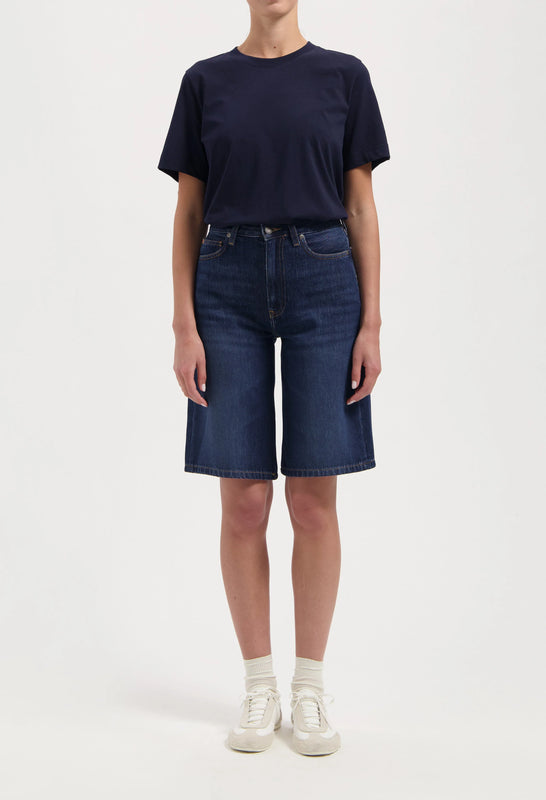 The Roxy Short combines a high waist with a relaxed, easy fit, perfect for warm days. Crafted from 12.25 oz. rigid denim with organic cotton and Saxcell, it’s designed for both comfort and sustainability. The faded vintage wash gives it a laid-back, worn-in character.
