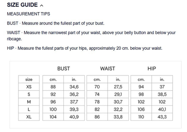 Different brands may have unique size charts, meaning a size M in one brand could be a size S in another. Most IVALO.COM brands provide a Size Guide on the Product Page. Please refer to your measurements and compare them with the brand's body measurements chart.