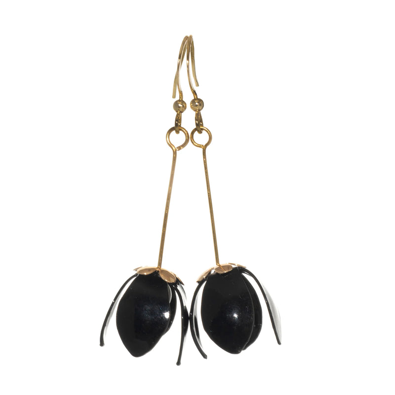 These earrings, embodying the delicate beauty of lilies, are perfect for adding a touch of sophistication to your everyday look or for special occasions. Their compact size makes them a versatile accessory, while the deep black hue offers a touch of timeless elegance. Perfect for those who appreciate a blend of simplicity and style.