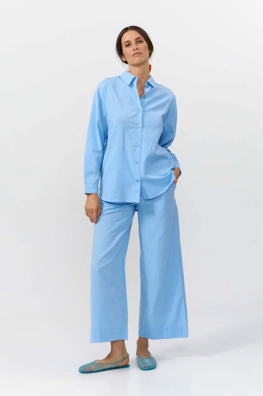Shirt met lange kraag en lange mouwen met manchetten. Met knoopsluiting aan de voorkant, corozo-moerknopen en twee banden aan de zijkant voor verstelbare vormgeving. Het biedt een zacht en ademend gevoel dat de hele dag door werkt. Een gemakkelijke optie jeIk zal waarschijnlijk meer dragen dan gepland.