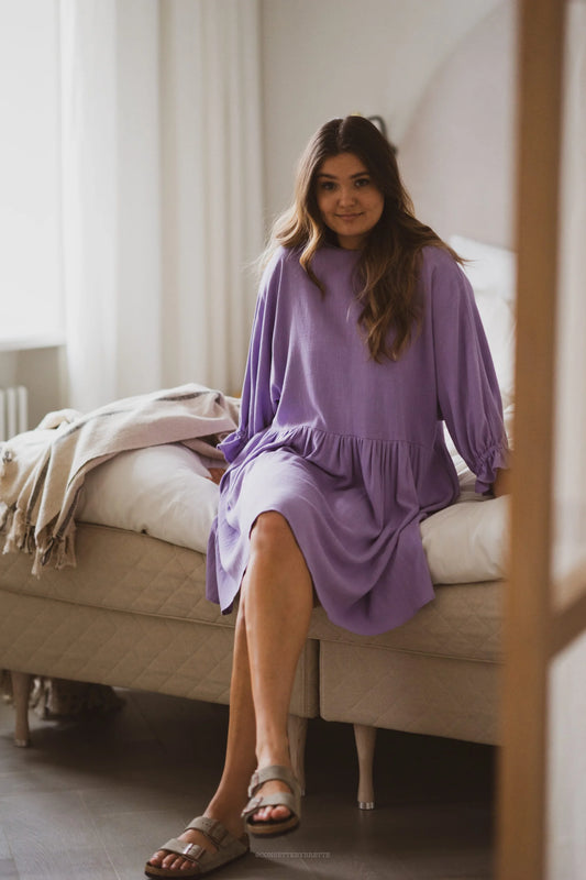 Een zomerse en lichte jurk die op twee manieren gedragen kan worden: met de diepe V-hals aan de voorkant of achterkant. Tessa heeft een mooie oversized snit die het een super comfortabele zomerjurk maakt. De linnen en viscose mix stof voelt heerlijk aan op warme dagen.