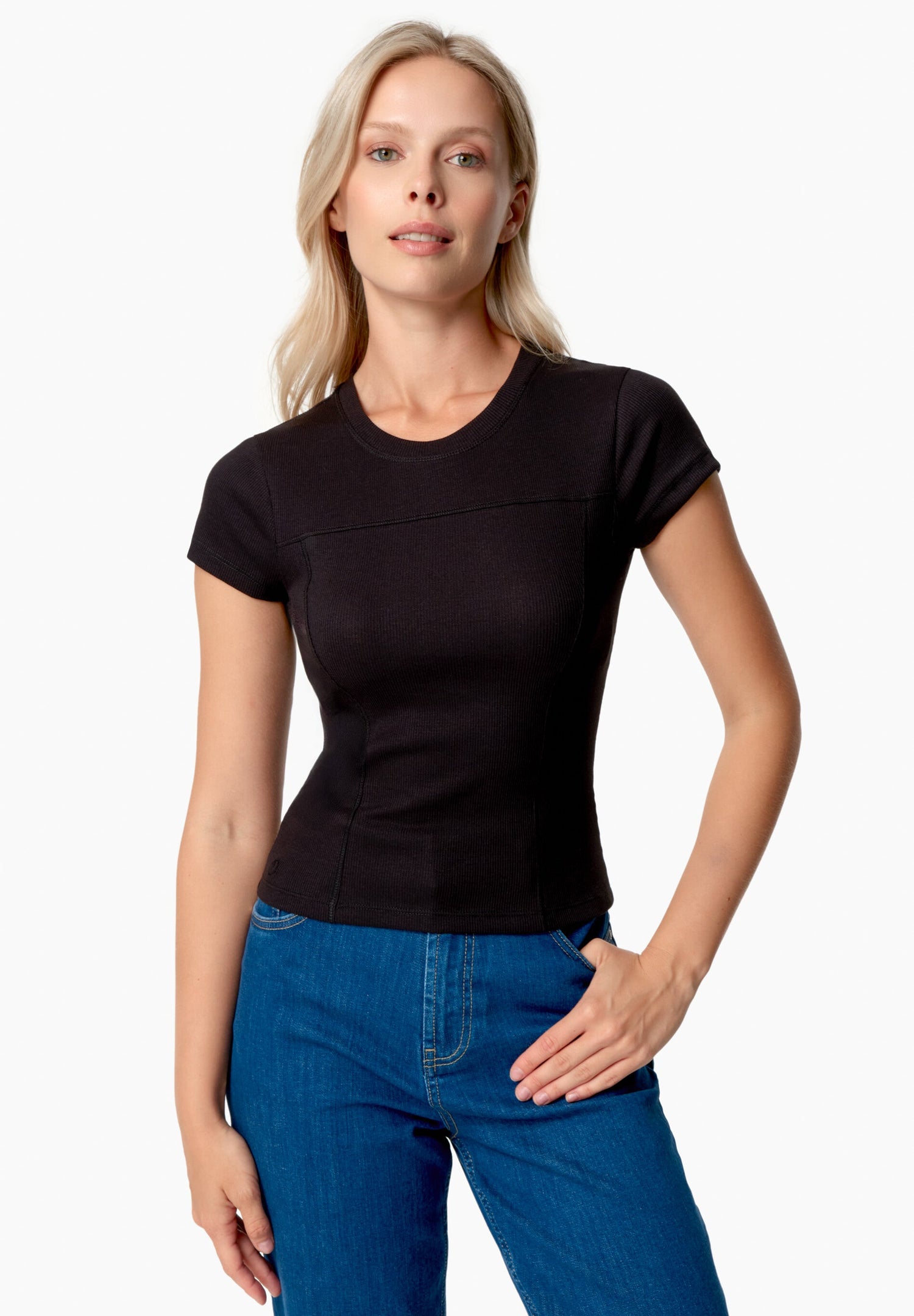 Het Tillda Ribbed T-Shirt combineert organisch katoen, TENCEL™ Modal en een vleugje elastaan voor een zachte, flexibele pasvorm die met je meebeweegt. De slanke silhouet, klassieke ronde halslijn en subtiele logo-borduring aan de zoom zorgen voor een veelzijdige, verfijnde uitstraling—ideaal om alleen te dragen of gelaagd onder een vest. Door duurzame materialen te combineren met doordacht ontwerp, biedt dit T-shirt met korte mouwen zowel comfort als stijl voor dagelijks gebruik.
