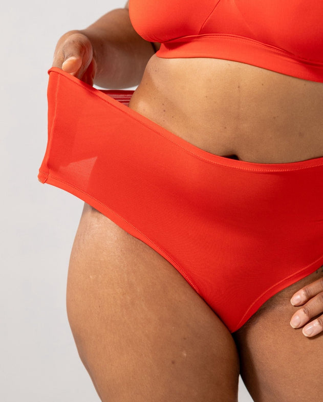 Mesh Lace Trim Hipster Fiery Red