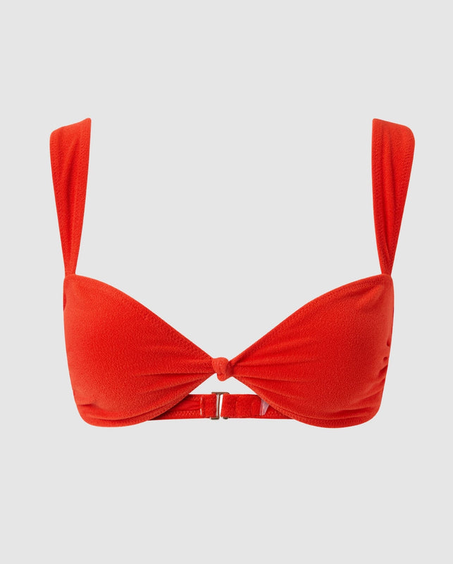Gemaakt van gestructureerde badmode stof met een badstof afwerking, biedt deze bikini top zowel stijl als comfort.