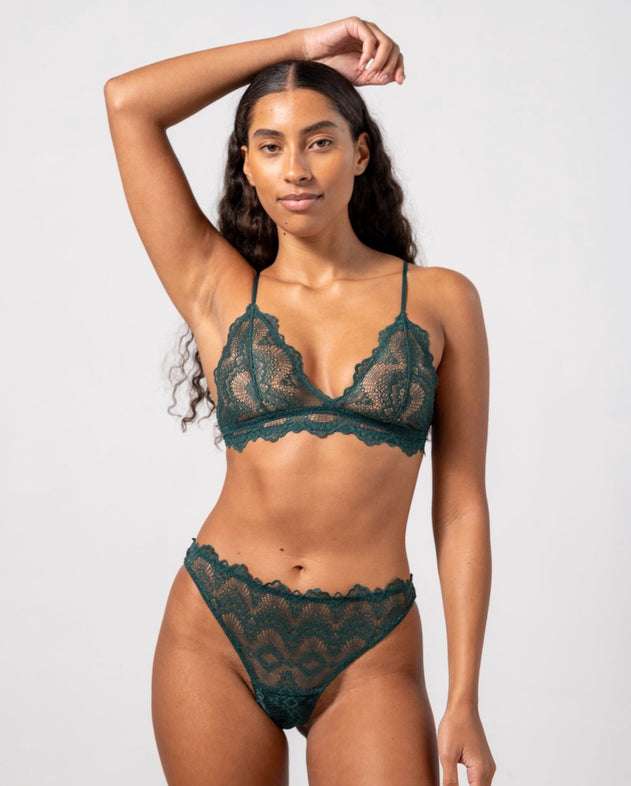 Light Flow Lace Thong Period Underpants 3-Pack Pine Green