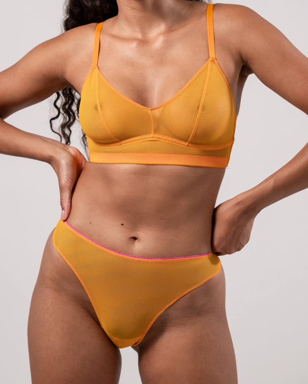 Mesh Ruffle Bikini Briefs Mustard / Electric Lilac