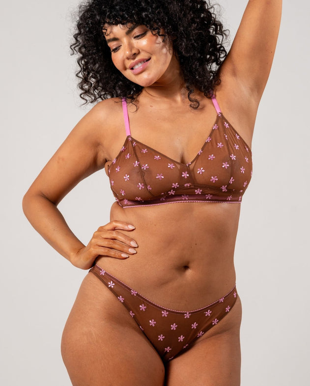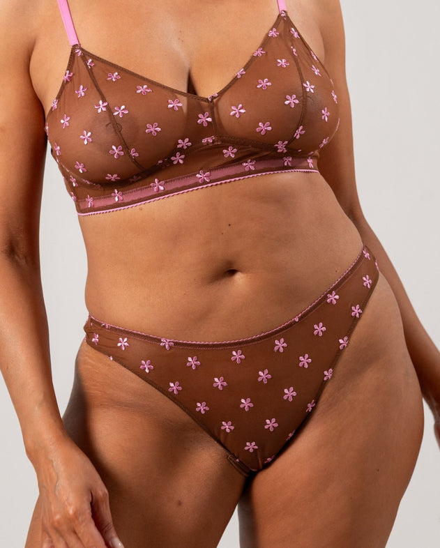 Mesh Bikini Briefs Pale Pink/Burgundy