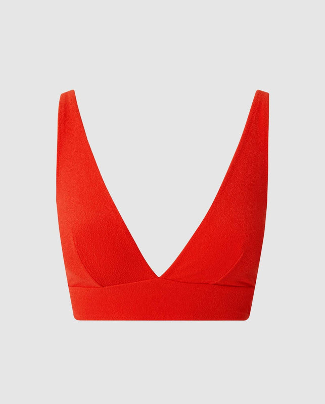 Slip-on bikinitop met diepe cups en een bredere onderband. Gevoerd met lichtgewicht microvezel. Verstelbare schouderbandjes. Metalen munt met Understatement symbool aan de achterkant.