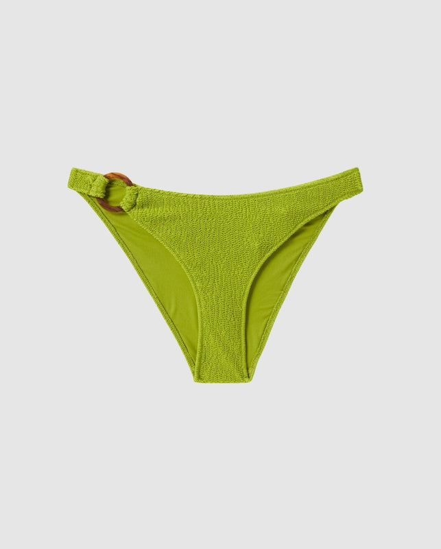 Deze Ring Bikini Briefs zijn gemaakt van gestructureerde badmode stof met een stijlvolle kreukeffect, wat ze een unieke en modieuze uitstraling geeft. Het ontwerp met een middelhoge taille heeft een flatterende gescooped taille, terwijl de hoog uitgesneden been een gedurfde dekking biedt voor een gedurfde, zelfverzekerde silhouet.