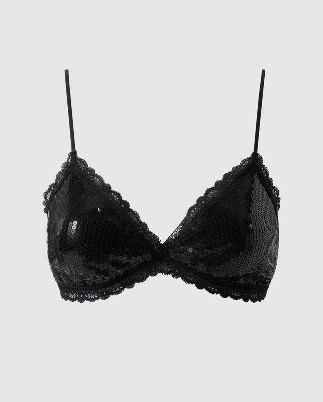 Sequin Mesh Triangle Bralette Black