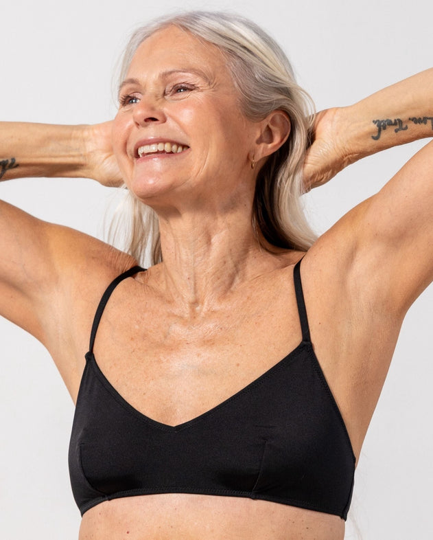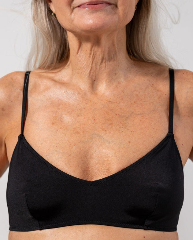 Schone lijnen, tijdloze stijl. Gladde badmode stof gemaakt van gerecycled polyamide. Gebogen bikinibovenstuk met een verstelbare sluiting aan de achterkant. Dunne, verstelbare schouderbandjes voor een perfecte pasvorm. Gedrukt Understatement logo aan de achterkant.