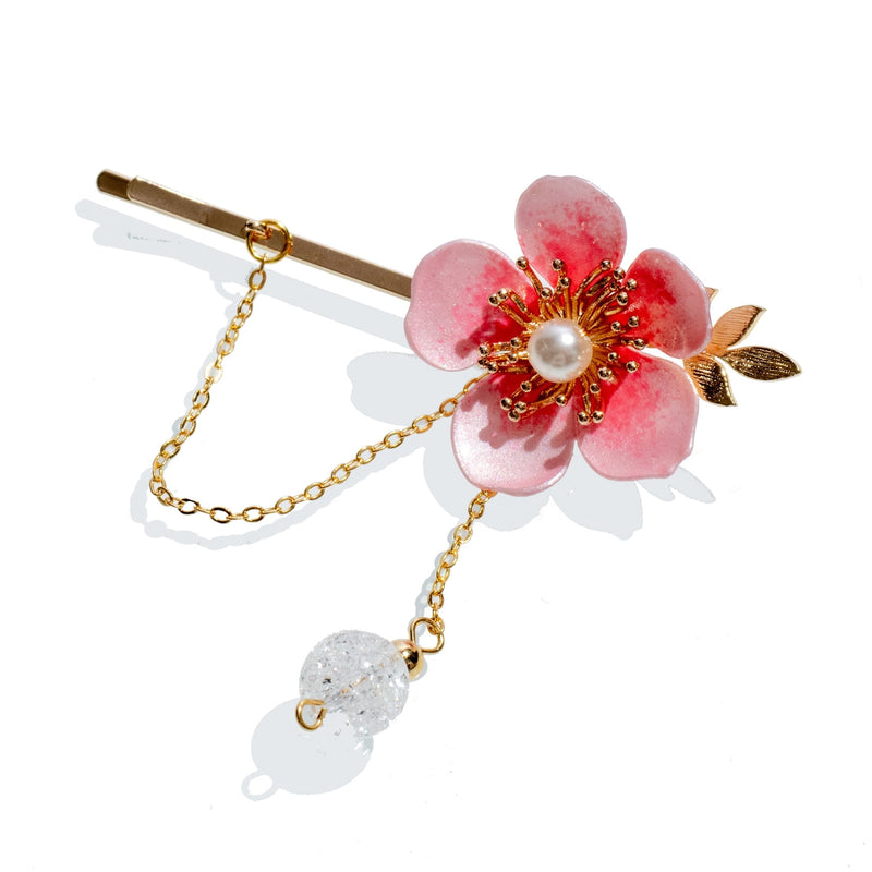 Deze ingewikkelde dimensionale haarspeld valt op in de menigte en spreekt tot jouw waardering voor vakmanschap en de natuurlijke wereld. De delicate roze kersenbloesem is handgemaakt van gerecycled plastic.