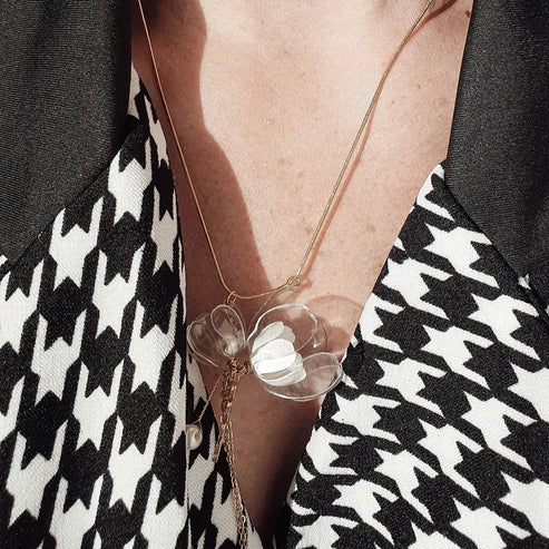 jouw sieraden worden gemaakt met een ingewikkeld proces waarbij ik eerst het plastic in vormen snijd die geïnspireerd zijn door bloemen, natuur en kunstvormen. Vervolgens krul ik met behulp van kaarswarmte het plastic zeer zorgvuldig in de prachtige organisch vormen die je in mijn productportfolio's ziet. Vervolgens versier ik jouw sieraden met kralen, bladeren en andere modeaccessoires. Een laatste montage zorgt voor perfect duurzame en functionele draagbaarheid.
