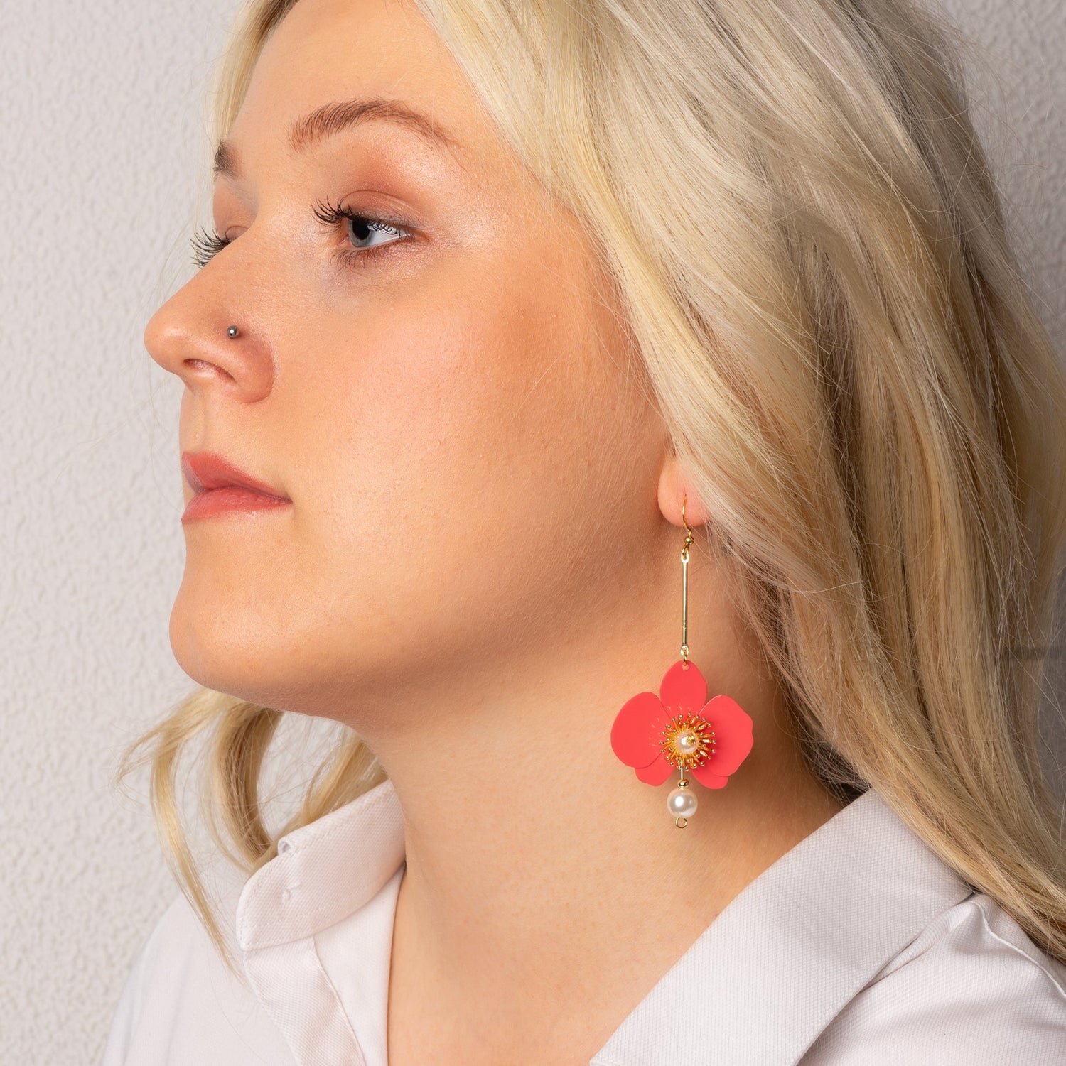 Butterfly Orchid Pearl Earrings Papaya Orange