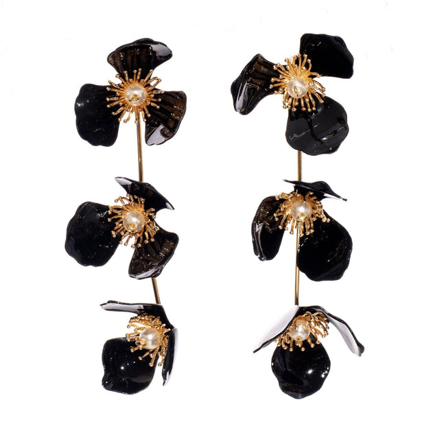 Triple Apple Flower Stud Earrings Black