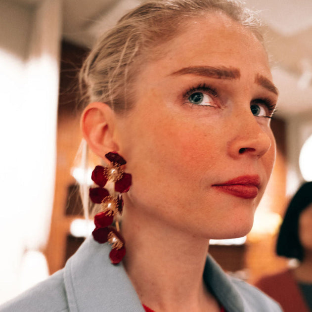 Ontdek de tijdloze charme van deze Triple Apple Flower Stud Earrings in Rood. Deze oorbellen hebben prachtig gedetailleerde appelbloesems, elk zorgvuldig gemaakt van gerecyclede plastic flessen voor een milieuvriendelijke mode-uitspraak.