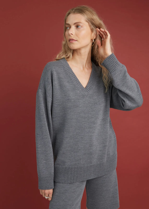 Een moeiteloos tijdloze trui met een ontspannen V-hals, geribde boorden en zoom. De trui is gebreid van 100% merinowol en combineert natuurlijke warmte, zachtheid en duurzaamheid. Ontworpen in een {{3d3276ccff5ad0db6a91fae129f31308} one-size pasvorm, valt hij mooi en past hij bij verschillende lichaamsvormen.