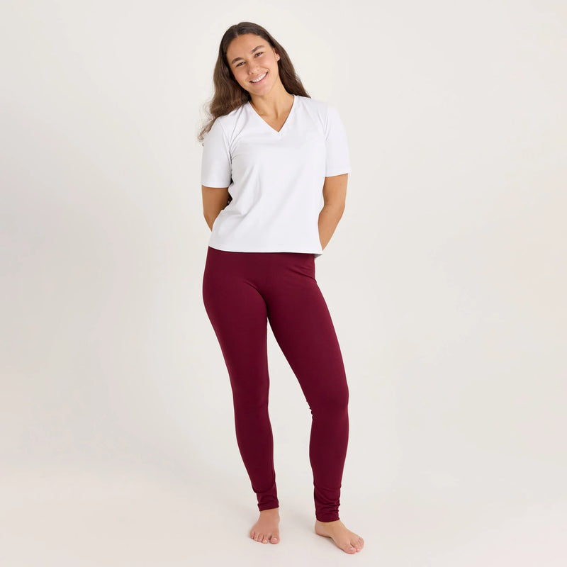 Women's High-Waist Bamboo Leggings Burgundy or Black