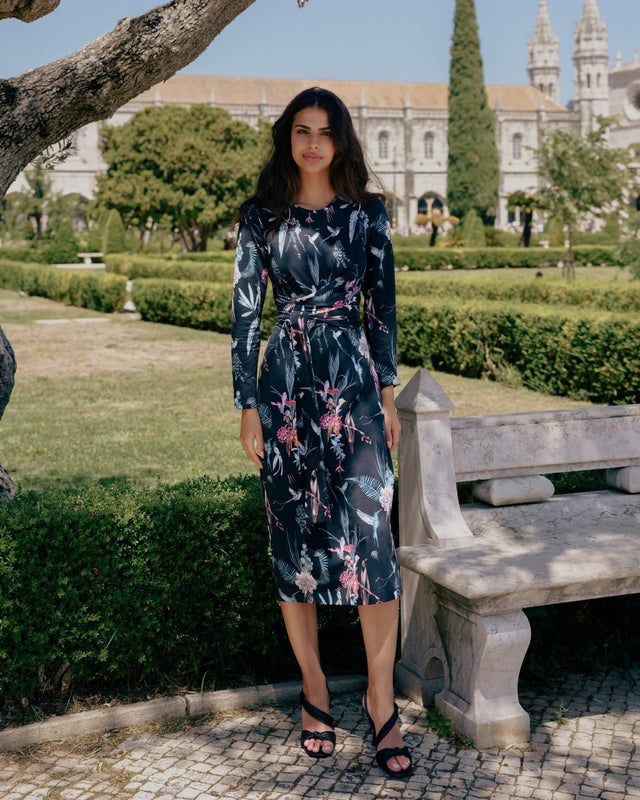 De nauwsluitende snit benadrukt de beste kenmerken van jouw, terwijl de midi-zoom een elegante en veelzijdige uitstraling creëert. Het mooie detail van de jurk is de strikriem die een wikkelstijl silhouet creëert.